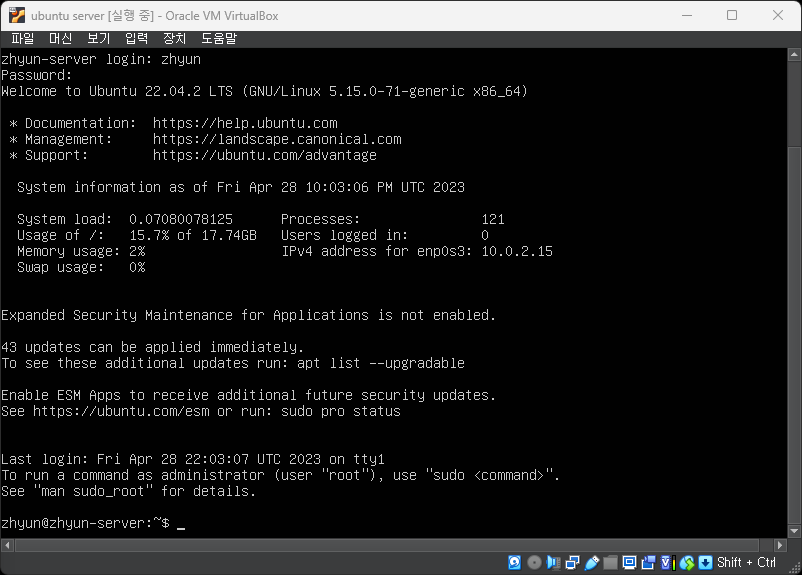 virtual box - Ubuntu Server 설치 2OS/Windows 2023. 11. 27. 00:01
