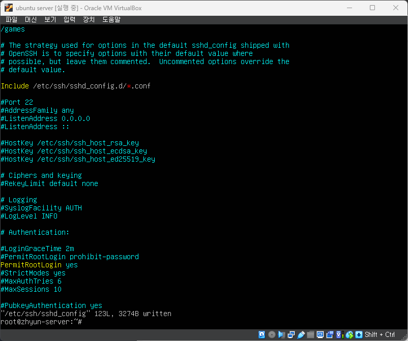vi /etc/ssh/sshd_config- PermitRootLogin yes 문장 입력