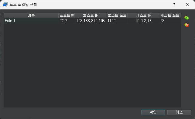 - 게스트 포트 : 접속할 우분투에서 사용중인 ssh의 포트 번호 확인 방법 : service sshd status 입력으로 확인