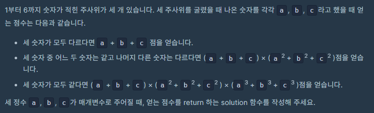 프로그래머스: 주사위 게임 2코딩테스트 문제 풀이/프로그래머스 2023. 11. 27. 00:01