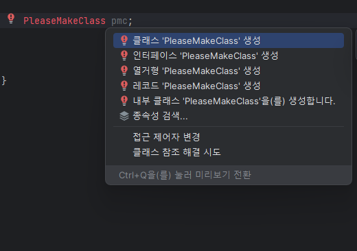 코드에 반환 타입이 있는 경우, 반환 자료형 변수 자동 생성