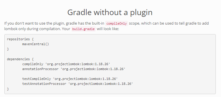 이 사이트 https://projectlombok.org/setup/gradle에서