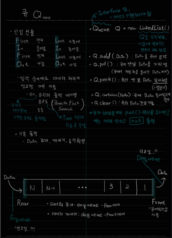Q.add( data )= 큐에 data 입력Q.poll()= 큐에서 값을 꺼냄