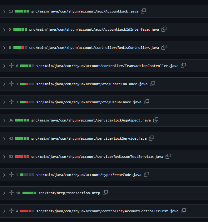 import com.zhyun.account.aop.AccountLockIdInterface; import lombok.RequiredArgsConstructor; import lombok.extern.slf4j.Slf4j; import org.aspectj.lang.ProceedingJoinPoint; import org.aspectj.lang.annotation.Around; import org.aspectj.lang.annotation.Aspect; import org.springframework.stereotype.Component; @Aspect @Component @Slf4j @RequiredArgsConstructor public class LockAopAspect { private final LockService lockService; @Around("@annotation(com.zhyun.account.aop.AccountLock) && args(request)") public Object aroundMethod( ProceedingJoinPoint pjp, AccountLockIdInterface request ) throws Throwable { lockService.lock(request.getAccountNumber()); try { return pjp.proceed(); } finally { lockService.unlock(request.getAccountNumber()); } } }이렇게 까지 분석해봐야 하나 정말 깊은 생각을 잠시 했지만, 이왕 손댄김에 계속 해보기르 ..🙈 사서 고생하는걸 좋아하는 편이었던 것일까? 🥲 정신이 몽롱해져서 판단이 잘 안선다. 언젠가 필요로 하겠지 !