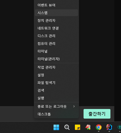 1. 윈도우 버튼 위에서 우클릭 - 시스템 클릭