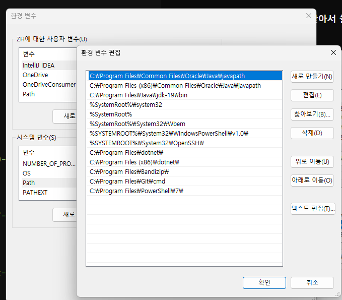 환경변수 추가 후 , intelliJ도 껐다가 켜줘야됨 🥲