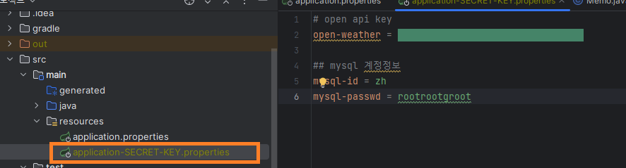 @Value어노테이션을 사용해서 가져와 쓸 수 있다.@Value("${open-weather}") private String apiKey;'Spring Boot 🍃' 카테고리의 다른 글