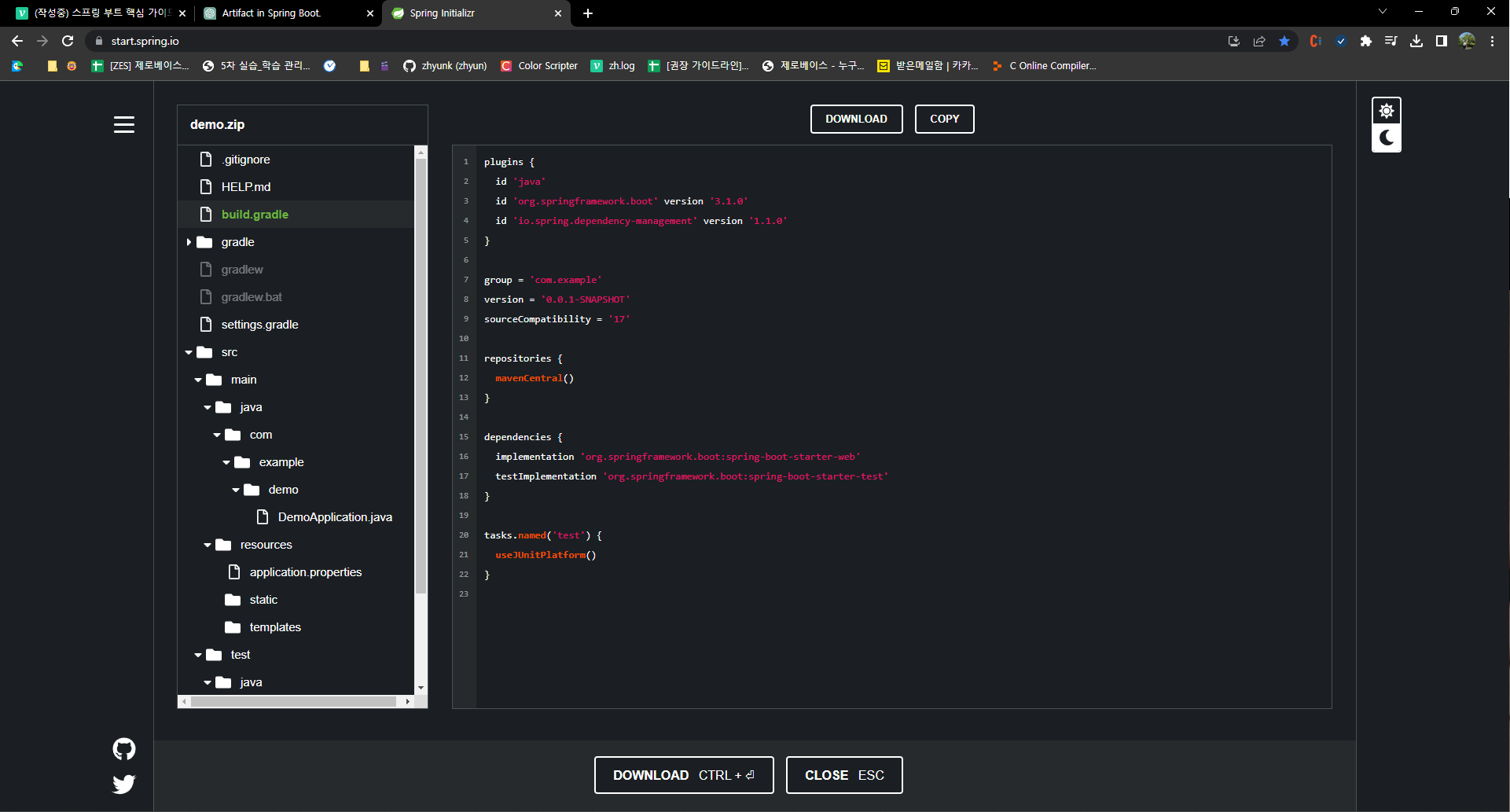 GENERATE버튼 클릭 시설정 완료 된 프로젝트의 압축 파일을 다운 받을 수 있고,