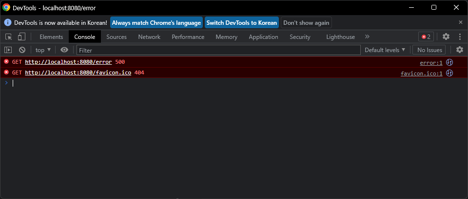 이 코드를 주석 걸어두니 해당 에러 페이지가 나타나지 않았다.