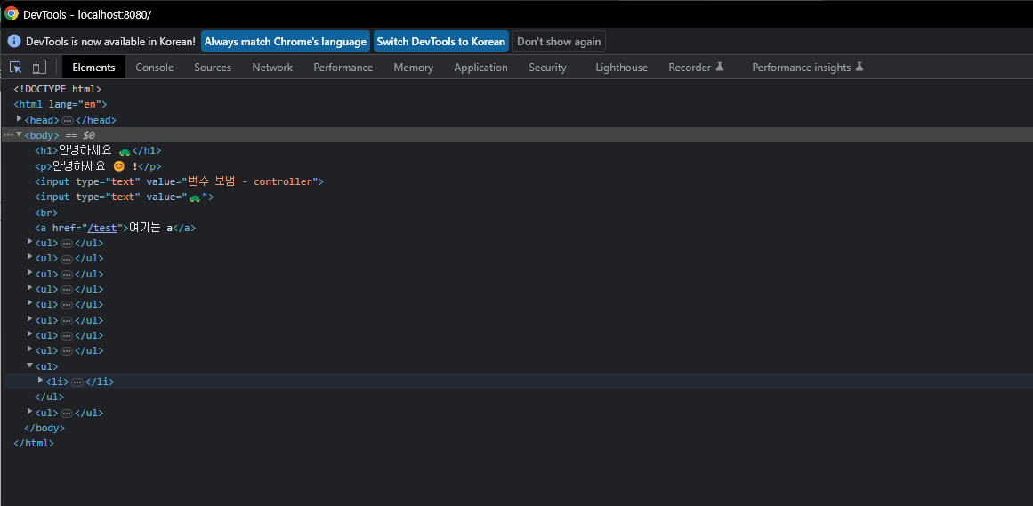 서버를 재시작하여 뷰를 띄워보면