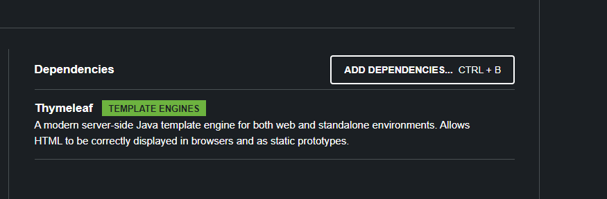 dependencies { implementation 'org.springframework.boot:spring-boot-starter-thymeleaf' }