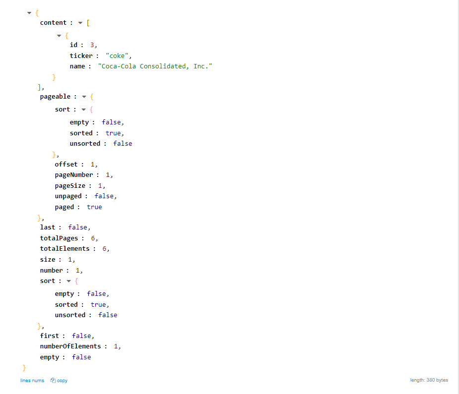 http://localhost:8080/company?sort=ticker&size=1&page=1