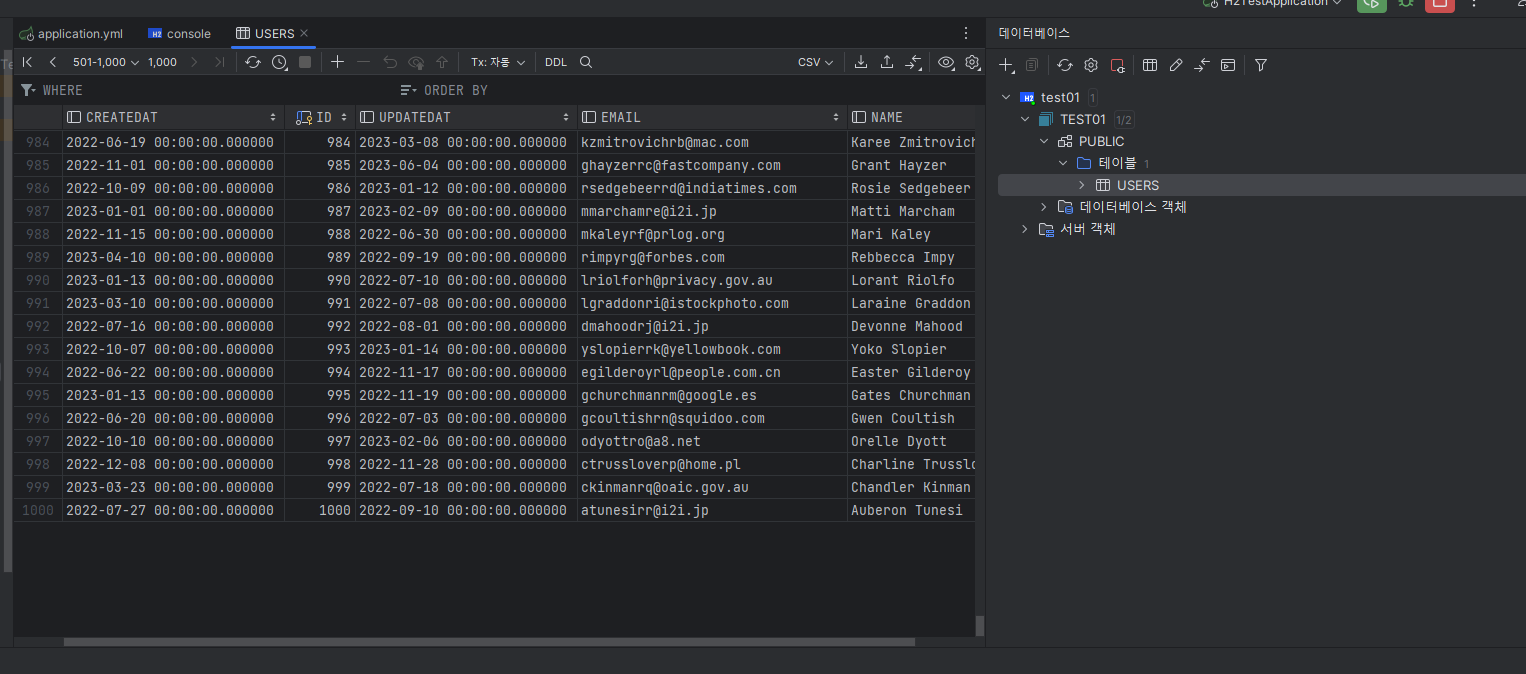 5. 어플리케이션 실행 후 인텔리제이에서 db 데이터 확인