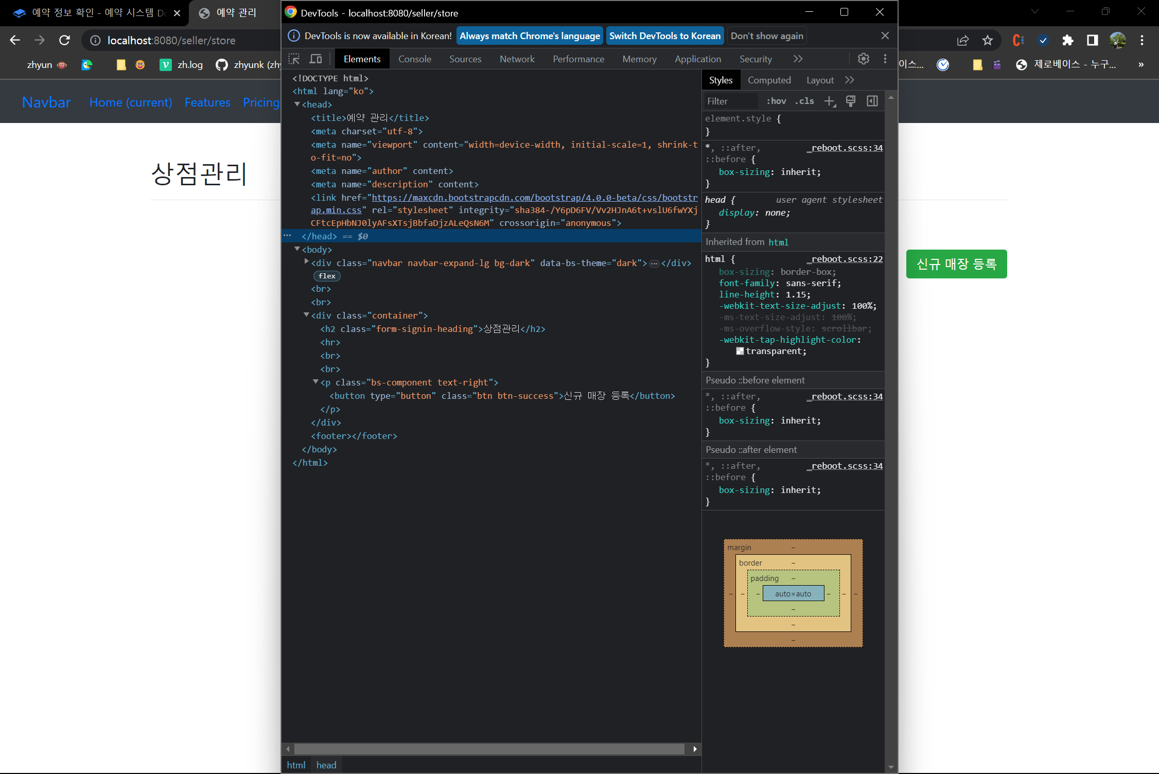 <html lang="ko" xmlns:th="http://www.thymeleaf.org" xmlns:layout="http://www.ultraq.net.nz/thymeleaf/layout" layout:decorate="~{fragments/layout}" layout:fragment="contents" > <div class="container"> <h2 class="form-signin-heading">상점관리</h2> <hr/> <br/><br/> <p class="bs-component text-right"> <button type="button" class="btn btn-success">신규 매장 등록</button> </p> </div> </html>