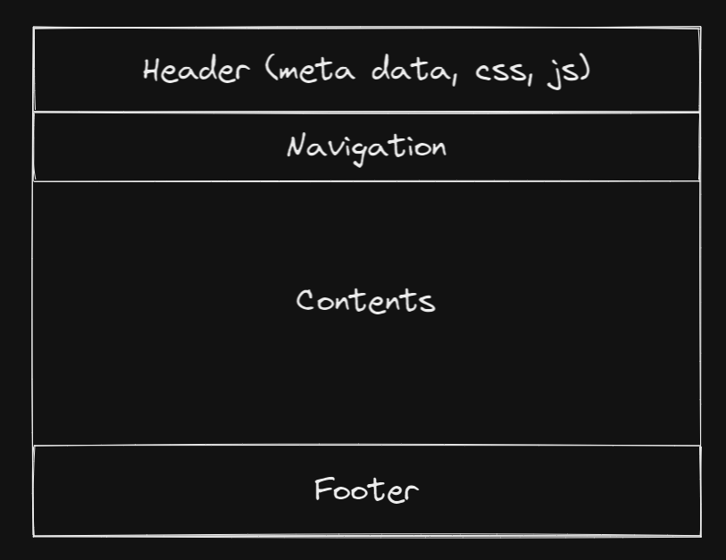 - header, footer, navigation, contents 파일을 띄우는 파일