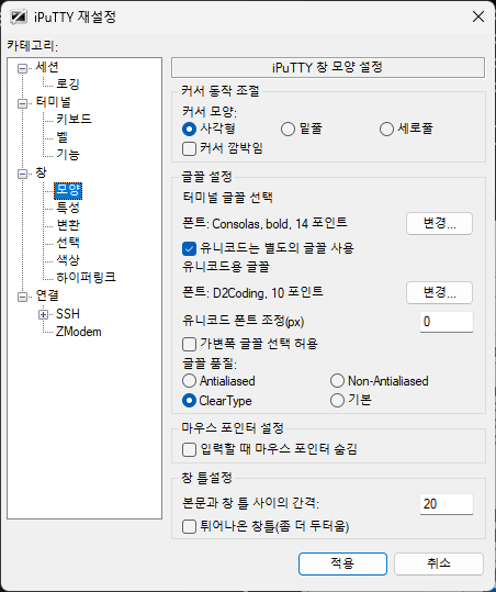 집에다 적용한 Putty 셋팅