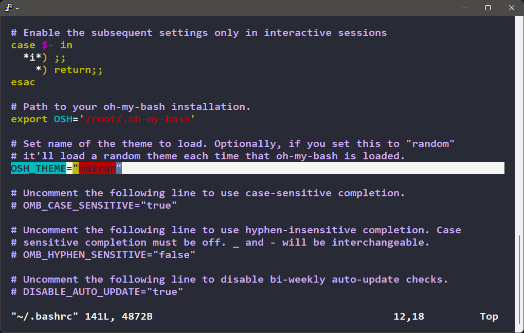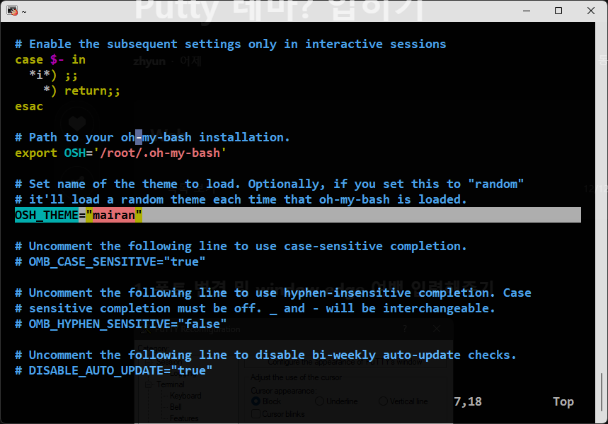 bash -c "$(curl -fsSL https://raw.githubusercontent.com/ohmybash/oh-my-bash/master/tools/install.sh)"3-2. 테마 입력
