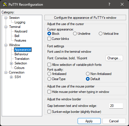 2. Putty 배경 색 변경