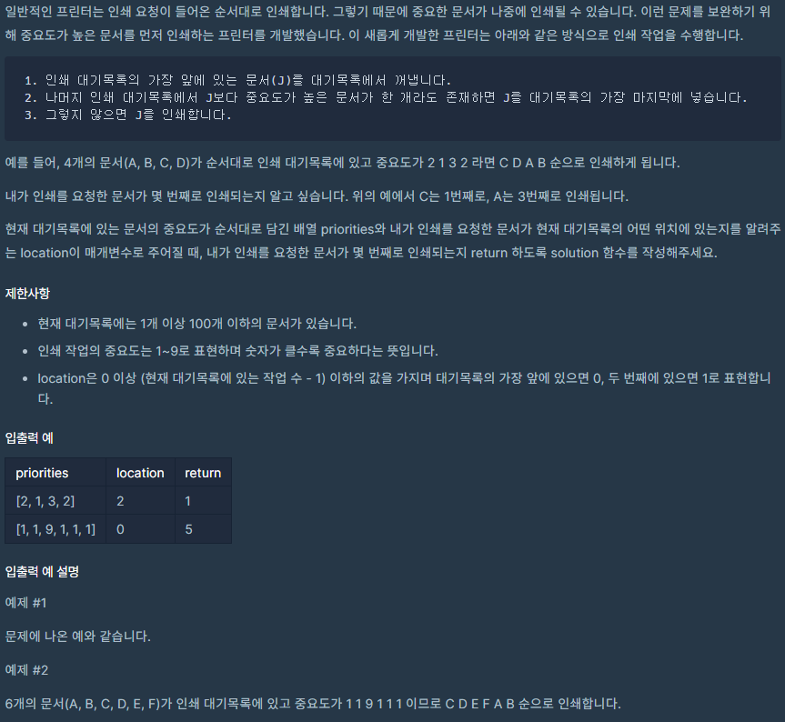 프로그래머스 : 프린터코딩테스트 문제 풀이/프로그래머스 2023. 11. 20. 00:01