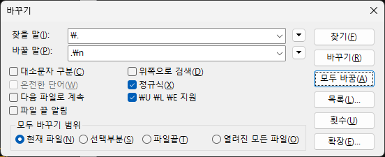 ". " 찾아 바꾸기