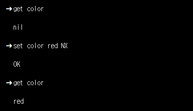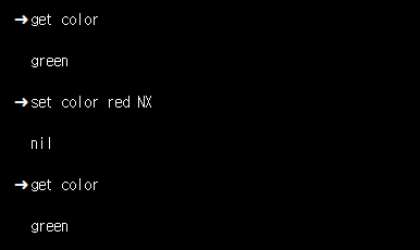 color 가 nil일 경우에만 생성 (= color에 저장된 값이 없는 경우 == color를 최초 생성하는 경우 == color가 nil임 )SET color red NX