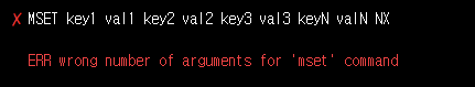 👆 NX 옵션은 value가 없는 key로 인식되어 에러 메세지가 출력되었다.