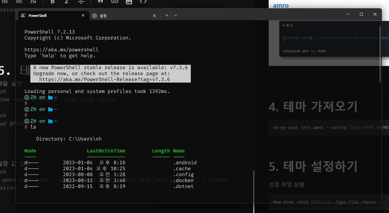 eval "$(oh-my-posh init bash --config ~/amro.omp.json)".profile 파일 실행