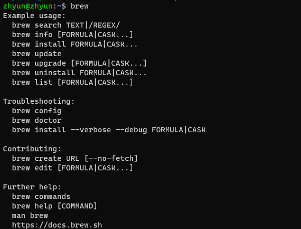 설치 확인 brew 입력시 다음과 같이 출력되면 설치 성공!