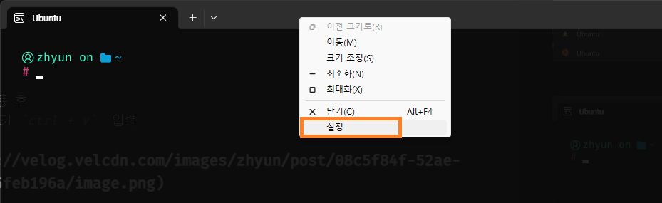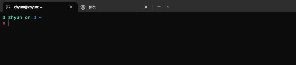 설치 후 터미널을 종료하고 새로 실행한 다음, title 표시 줄 위에서