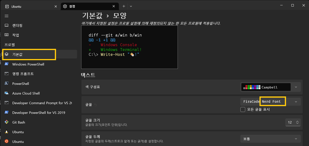oh-my-posh font install폰트 보는 곳 > https://www.nerdfonts.com/font-downloads