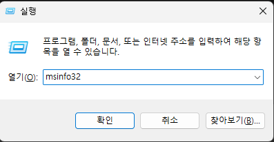 윈도우키 + r 입력 -> msinfo32 입력 -> 확인