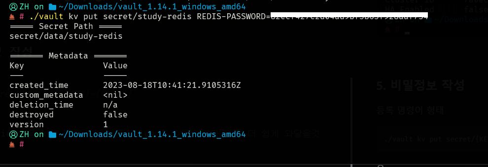 ./vault kv put secret/{KEY} {field}={value}음..