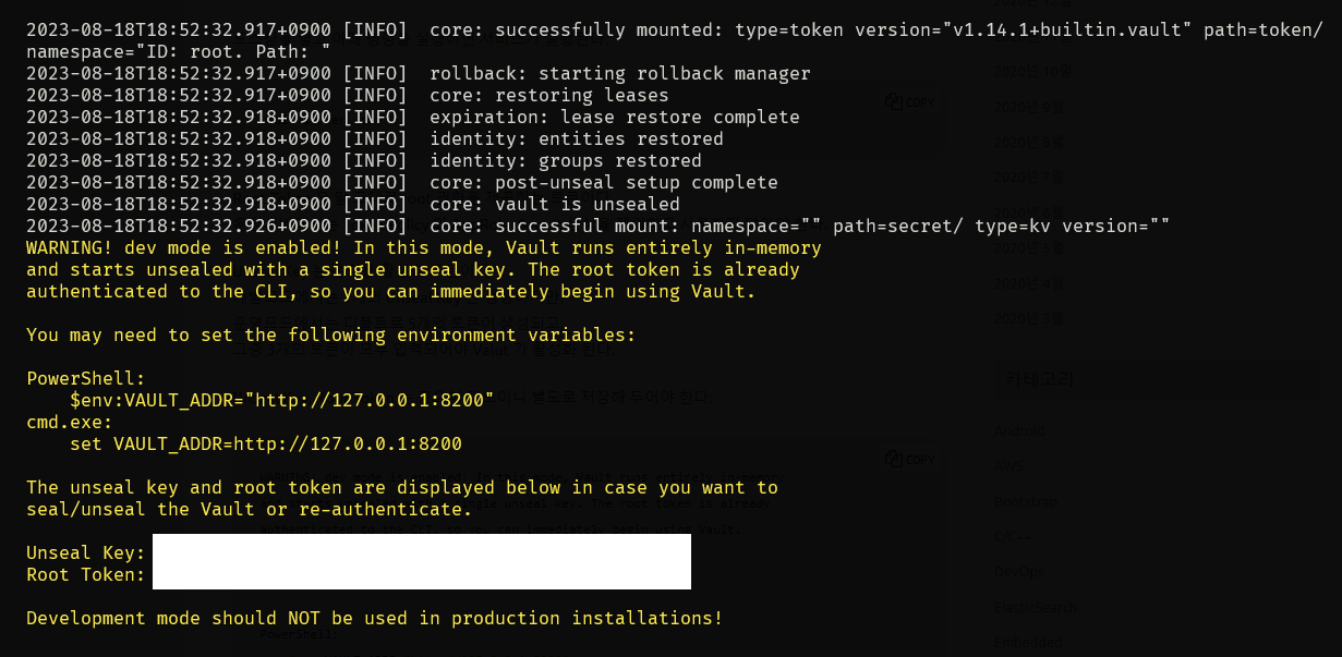 Unseal Key,Root Token정보가 나오는데 중요하다고 하니 잊어버리지 않게 잘 저장해두어야 겠다! 나의 경우 클립보드에 나사 박아두는 편 ㅋㅋ📍 클립보드에 나사 박아두는 방법