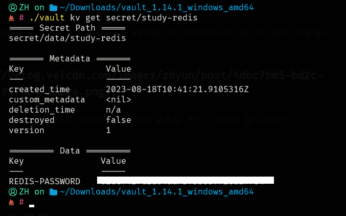 ./vault kv get secret/{KEY}