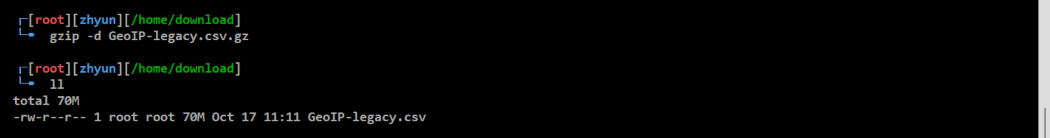 wget https://mailfud.org/geoip-legacy/GeoIP-legacy.csv.gz1-3. 다운로드 확인
