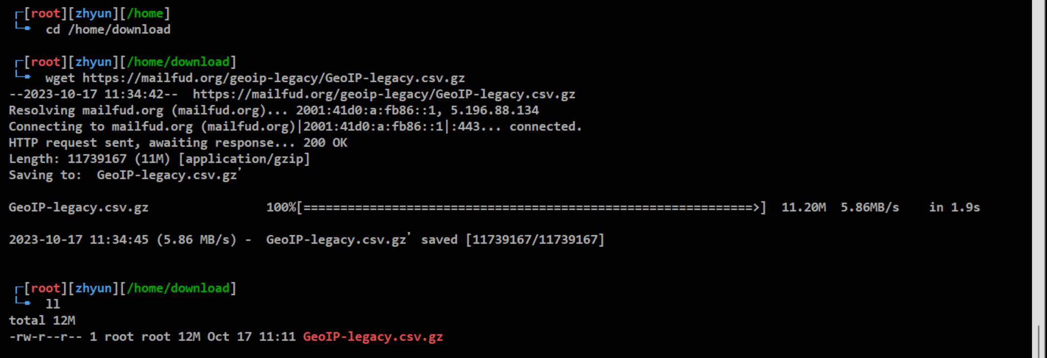 wget https://mailfud.org/geoip-legacy/GeoIP-legacy.csv.gz1-3. 다운로드 확인