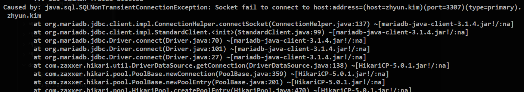 오랜만에 띄워놨던 프로젝트를 실행해보다가 갑자기 마리아DB 연결 실패가 떠서