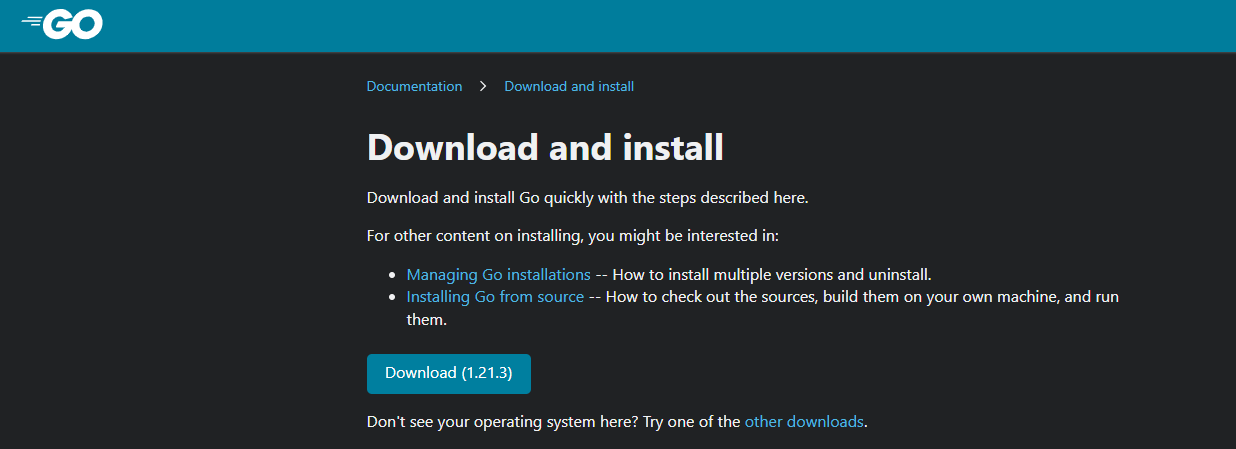 Go 설치 사이트로 이동 -> https://go.dev/doc/install