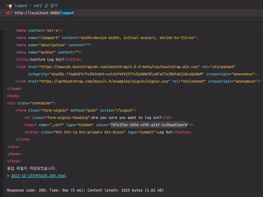 1. /logout 주소로 GET 요청을 보내서 csrf 값을 복사한다.