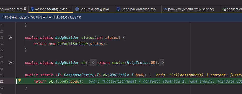 EntityModel<User>타입으로 해주고 있었더니 @Id 어노테이션이 붙은 id 필드가 응답 결과에 출력되지 않았다.id 필드를 출력해주기 위해 다음 코드를 추가해 주고