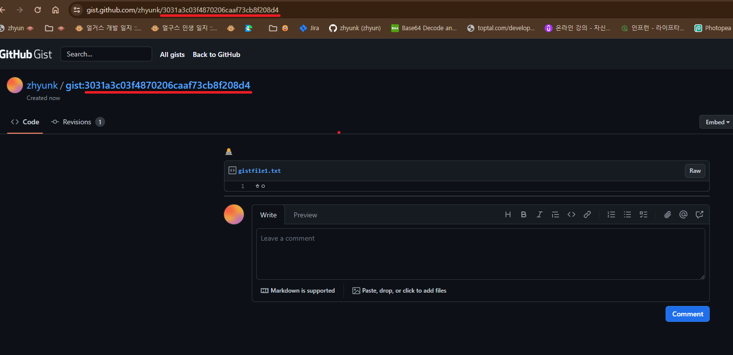 3. 생성 된 gist 주소의 맨 마지막 값을 복사한다.