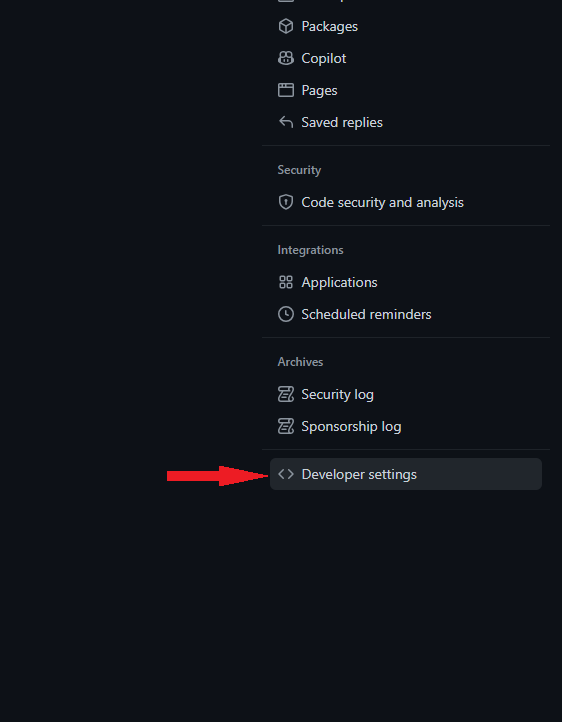 2. 좌측 메뉴 마지막에 Developer Settings 클릭