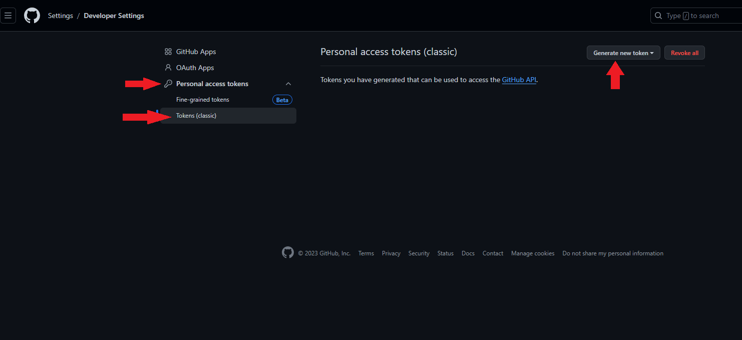 3. Personal access tokens - Token - Generate new token 클릭