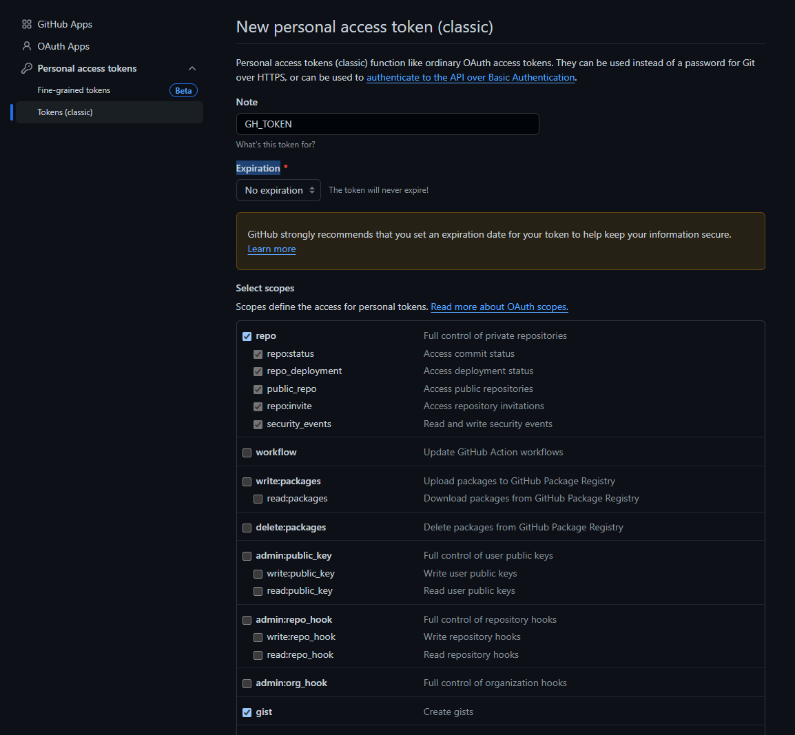 2. github에서 자동으로 gist를 업데이트하도록 GH_TOKEN 키 생성