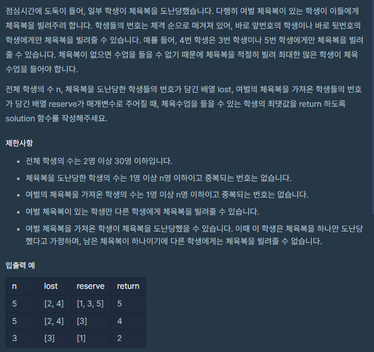 프로그래머스 : 체육복코딩테스트 문제 풀이/프로그래머스 2023. 11. 22. 01:01