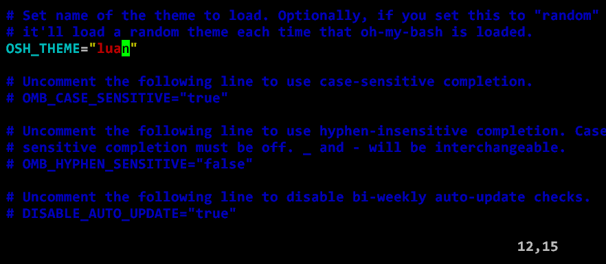 .bashrc파일을 연다.vi ~/.bashrc12번째 줄에 보이는 theme에 복사했던 테마 이름을 입력한다.