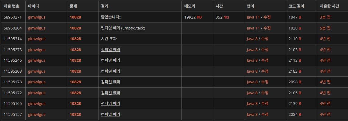하하 어쩌다 백준에 "시도했지만 맞지 못한 문제" 목록을 발견해서 풀어보고있다. 예전에 한참 공부할 때 풀지 못했던 몇개의 문제가 기록되어있었다. 이제는 풀수 있게되어서 다행..😊