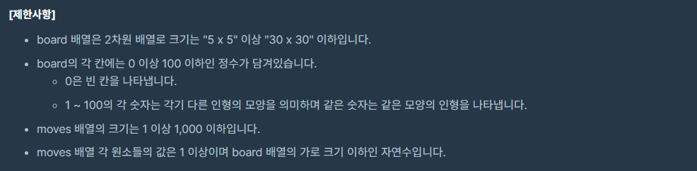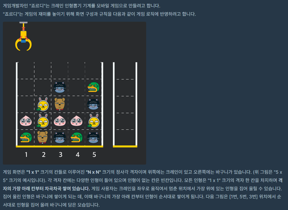 프로그래머스: 크레인 인형뽑기 게임코딩테스트 문제 풀이/프로그래머스 2023. 11. 24. 00:01