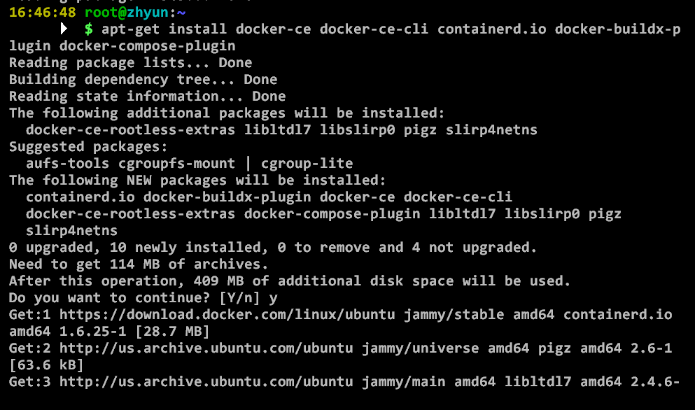 apt install docker-ce docker-ce-cli containerd.io docker-buildx-plugin docker-compose-plugin