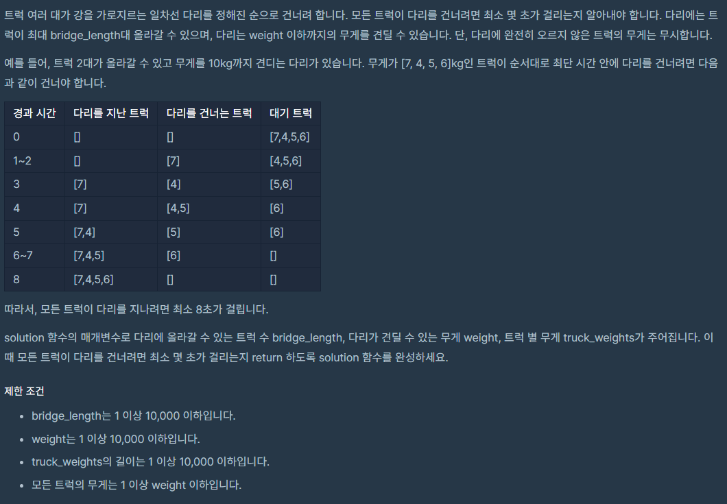 프로그래머스: 다리를 지나는 트럭코딩테스트 문제 풀이/다시 풀어볼 문제 2023. 11. 25. 00:01